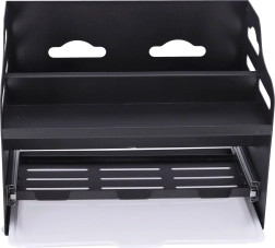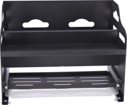 Pospravite kuhinjski pult in omarice s tem dvonadstropnim organizatorjem za začimbe. Ponuja prostoren shranjevalni prostor za začimbe, olja in pripomočke, ima stabilno kovinsko konstrukcijo ter praktične sprednje posodice za dodatke. Zahvaljujoč elegantni črni zasnovi se poda v vsako kuhinjo, vse pa boste imeli pregledno pri roki.