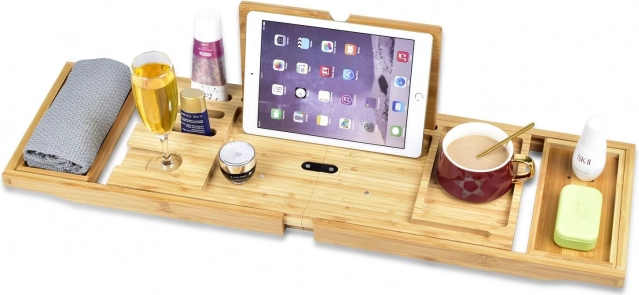 Z opremo za tablico in držalom za kozarec vina se lahko popolnoma sprostite. Na polico lahko postavite knjigo, izdelke za kopel ali svečo.