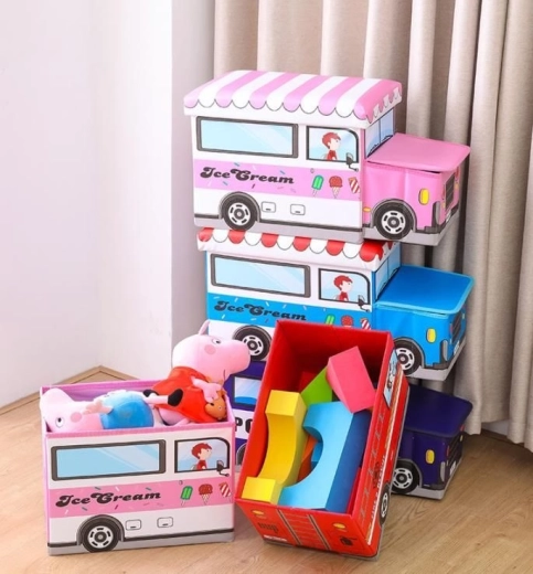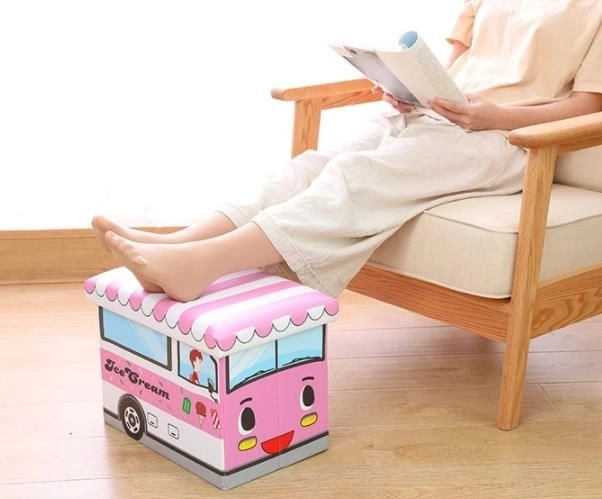 Škatla za shranjevanje igrač s pufom – Sladoledni avto