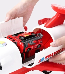 Odkrijte ustvarjalno igro z rdečim potniškim letalom, ki sprejme vse priložene avtomobilčke in jih v hipu spusti v akcijo. Na strehi so 4 gumbi za svetlobne in zvočne učinke, ki naredijo vsako misijo še bolj realistično. Odpirajoči se trup služi kot praktičen odlagalni prostor, zadnji izstreljevalnik pa omogoča bliskovit izvoz avtomobilov.