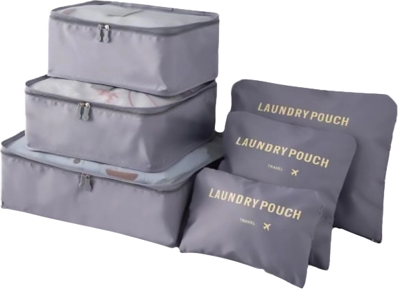 Šest praktičnih delov v različnih velikostih za oblačila, perilo, dodatke in kozmetiko. Idealno za potovanja in domačo organizacijo.