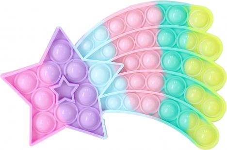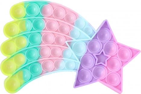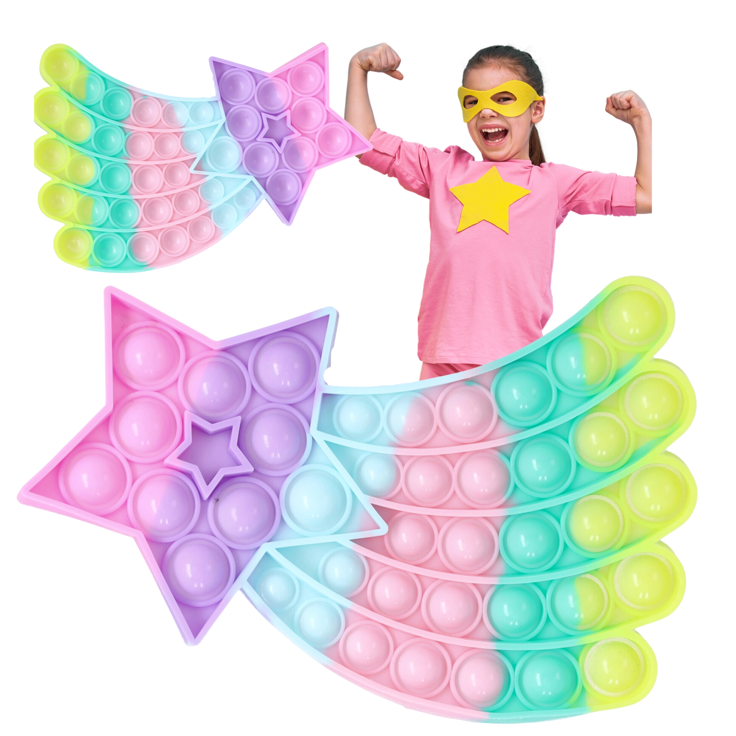 Priljubljena antistresna igrača Push Pop Bubble v obliki padajoče zvezde prinaša takojšnje sproščanje in senzorično stimulacijo. Pritisnite mehurčke, obrnite in igrajte znova – idealno za otroke od 2. leta dalje in odrasle. Izdelana iz trpežnega silikona, enostavna za čiščenje in vodoodporna, zato jo lahko imate vedno pri roki za zmanjšanje stresa in izboljšanje zbranosti.