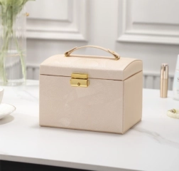 Trdno zlato zapiranje in priročen ročaj olajšata prenašanje. Nakit ostane na varnem doma in na poti.