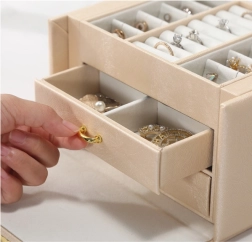 Raznoliki predalčki, predali in kavlji poskrbijo, da so uhani, prstani, zapestnice in verižice pregledno ločeni in vedno pri roki.