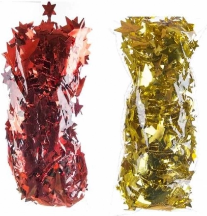 Božična girlanda z zvezdami ima v sebi oblikovno stabilno žico, zato si lahko po lastni domišljiji ustvarite božično dekoracijo poljubne oblike. Primerna je tudi za okrasitev božičnega drevesa. Božični okraski pričarajo prijetno božično vzdušje miru in topline. Zvezdasto girlando lahko izberete v zlati, srebrni in rdeči barvi.