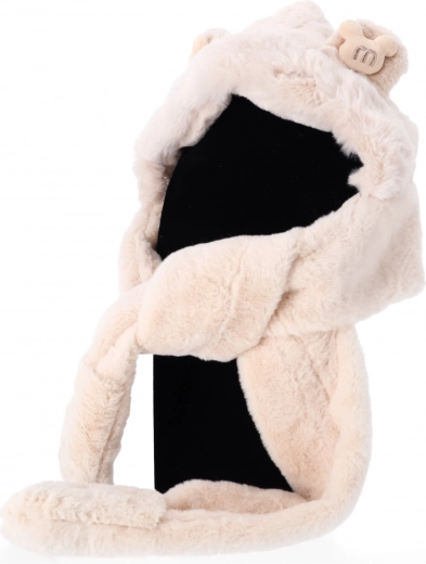 Otroška plišasta kapa s šalom in rokavicami 3-v-1 – Bež