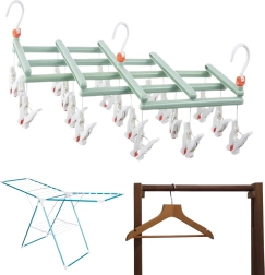 Praktično zložljivo sušilo z 19 ščipalkami je idealno za sušenje nogavic, spodnjega perila in manjših kosov tekstila doma in na prostem. Izdelano je iz trpežne plastike, ima vrtljiv kavelj in kompaktne mere po zlaganju. Prihrani prostor, omogoča hitro in organizirano sušenje ter z varnimi ščipalkami perilo zanesljivo drži brez odtisov.