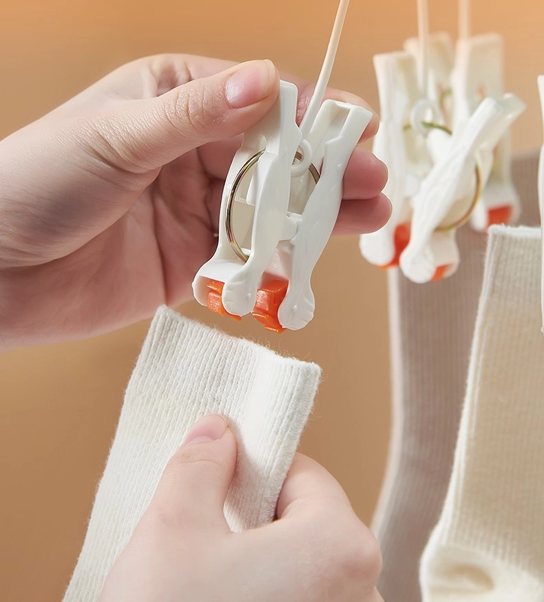 Ergonomske ščipalke z močno vzmetjo in protidrsno obdelavo varno držijo nogavice, spodnje perilo in otroška oblačila.