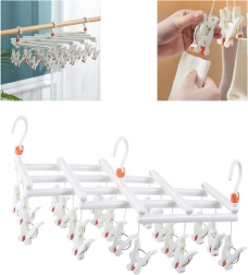 Plastični zložljivi obešalnik za oblačila s sponkami – 19 sponk – bel