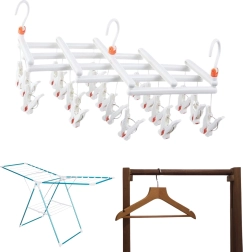 Funkcionalen, praktičen obešalnik, namenjen sušenju spodnjega perila in manjših kosov oblačil, kot so šali, rokavice, kravate, kape ali otroška oblačila.