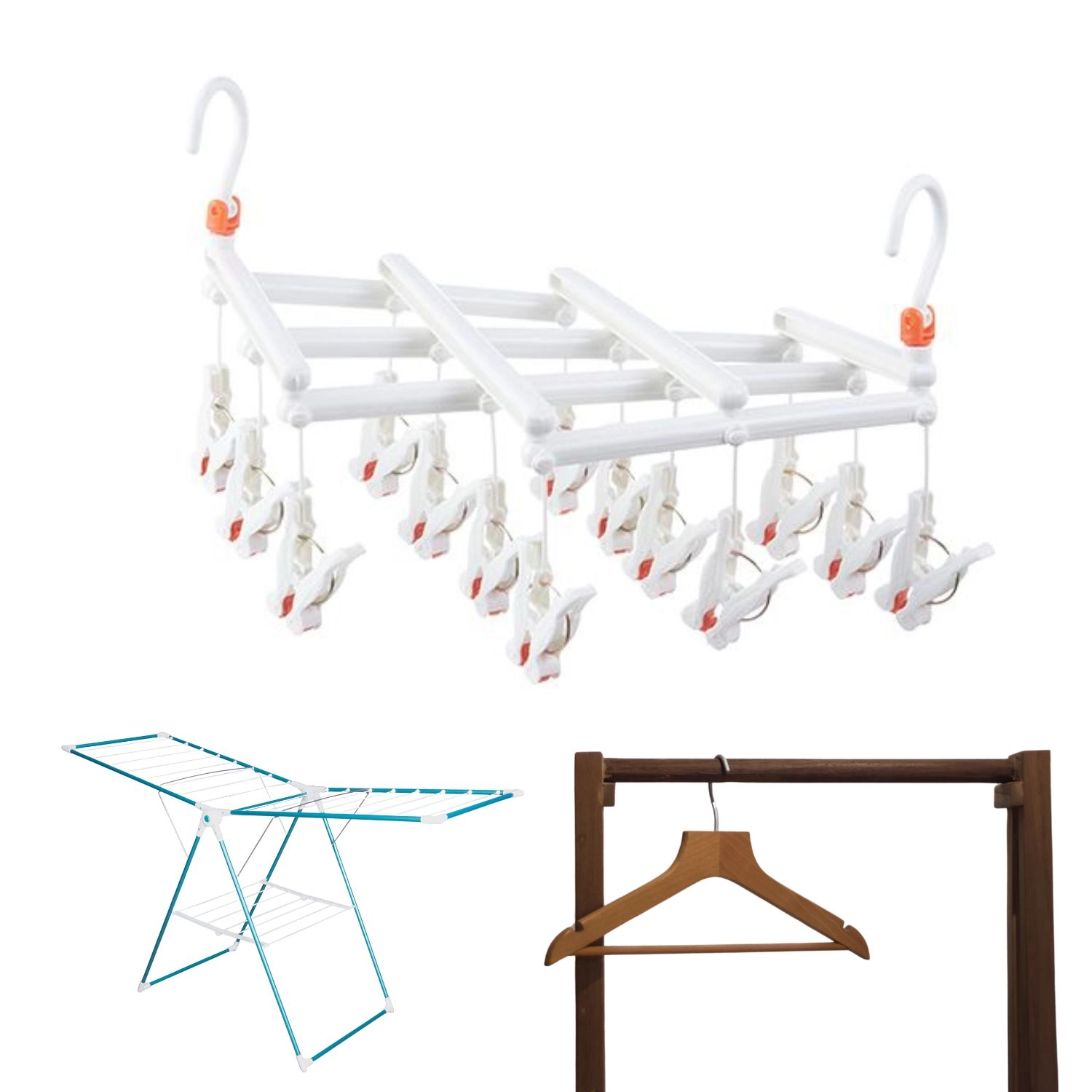 Iščete pametno rešitev za sušenje drobnega perila, ki ne zavzame veliko prostora? To zložljivo stojalo s 14 ščipalkami je izdelano iz kakovostne plastike, odporno je na vlago in ga zahvaljujoč vrtljivemu kavlju enostavno obesite na palico, vrv ali klasičen obešalnik. Odlično za balkon, kopalnico in na pot.