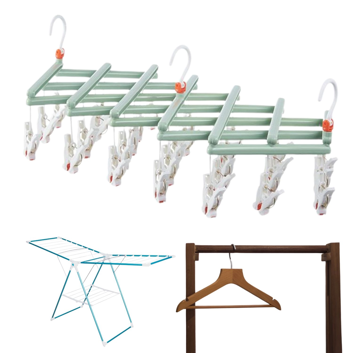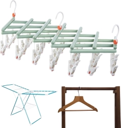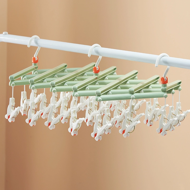 Zložljiv obešalnik za perilo s kljukicami, 29 sponk, zelen