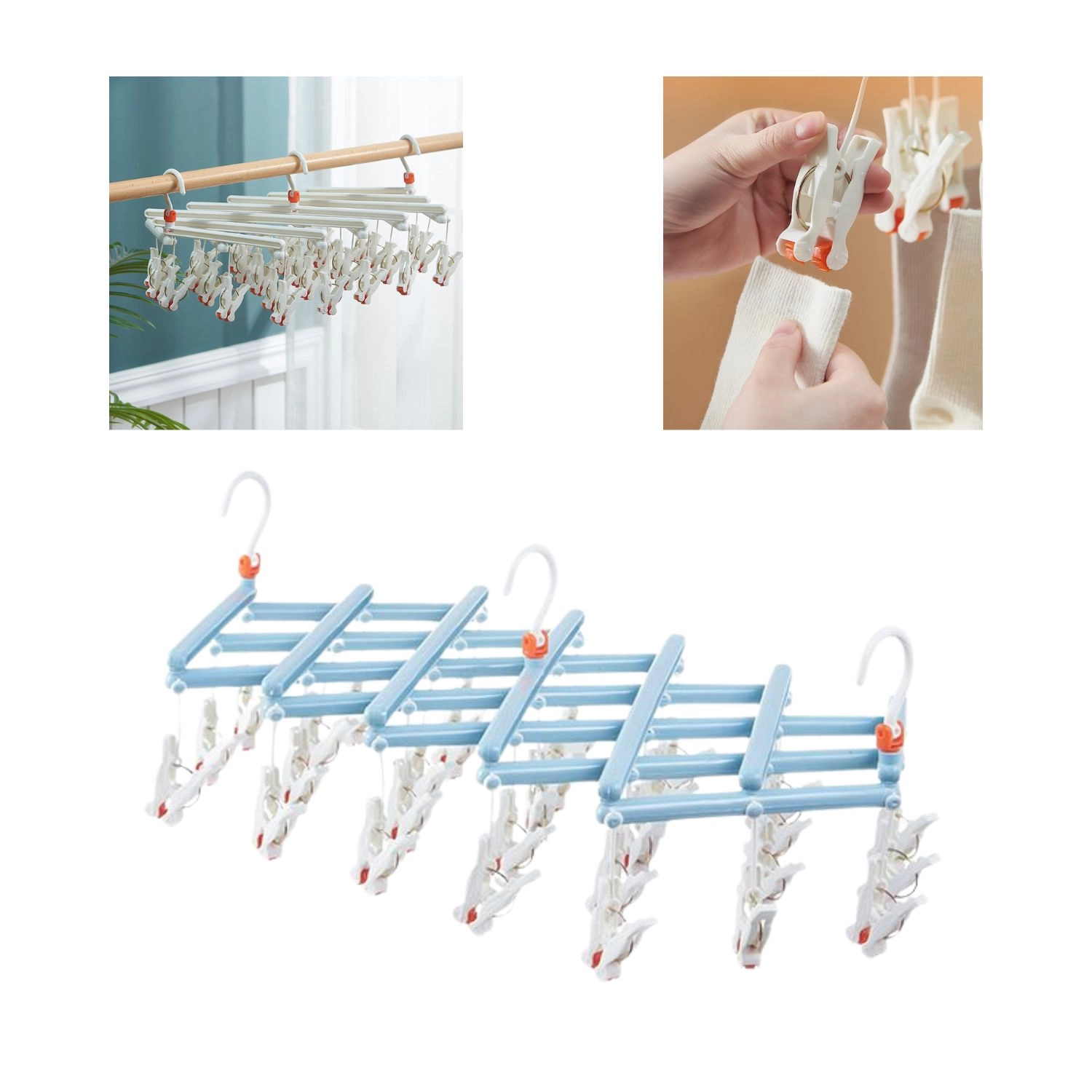 Praktičen zložljiv sušilnik za perilo z 29 sponkami je idealen za nogavice, spodnje perilo in manjše kose. Lahka in trpežna plastična konstrukcija, vrtljiva kljuka z zapiralom ter kompaktno zlaganje prihranijo prostor doma, na balkonu in na poti.