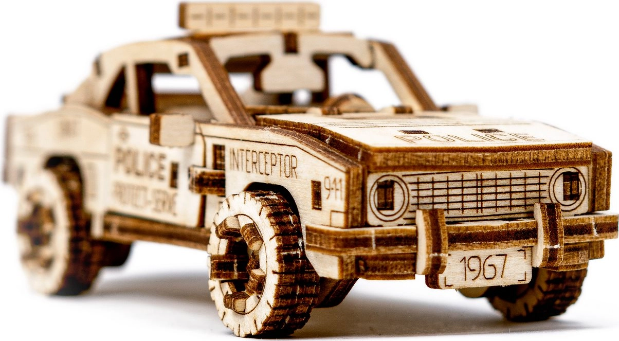 Sestavite si lastno policijsko vozilo iz kakovostne brezove vezane plošče in uživajte v mehanski 3D sestavljanki, ki razvija potrpežljivost, prostorsko predstavo in ustvarjalno razmišljanje. Model bo navdušil začetnike in napredne ter ne vzame veliko časa – kljub temu deluje realistično zaradi finega laserskega graviranja.