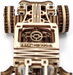 Ta realistični model buggyja v merilu 1:32 združuje premišljeno zasnovo in mehanske funkcije, ki navdušijo tako pri gradnji kot pri vožnji. Zahvaljujoč z laserjem izrezanim delom iz brestove vezane plošče se vse natančno prilega, rezultat pa je impresiven zbirateljski kos in poučna sestavljanka.