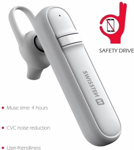 Slušalka SWISSTEN CALLER tehta le 7 gramov in omogoča do 4 ure pogovorov.