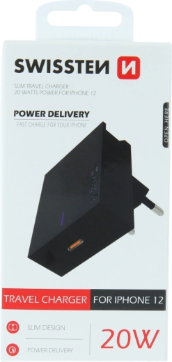 Polnilnik za iPhone 20W Power Delivery podjetja Swissten - črna