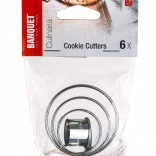 Praktičen set rezalnikov za testo v obliki krogov iz odpornega nerjavečega jekla za preprosto peko in slaščičarsko okraševanje. Vsebuje 6 kosov v različnih premerih, primerno za piškote, linško pecivo, fondant in marcipan. Nerjaveče jeklo zagotavlja dolgo življenjsko dobo, enostavno čiščenje in natančne oblike.