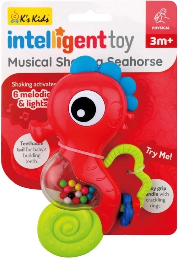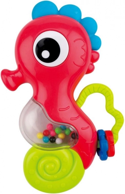 Glasbeno ropotuljico v obliki morskega konjička z mehko grivo bo dojenčku zagotovila veliko zabave in je idealna pri izraščanju zobkov. Trebuh morskega konjička vsebuje barvne kroglice, zato boste ob stresanju igrače slišali 6 tonov!