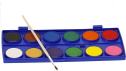 Akvarelne (vodene) barve so barve na vodni osnovi, ki se uporabljajo za slikanje na papir. Priložen je čopič.
