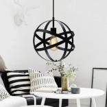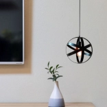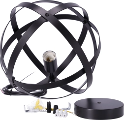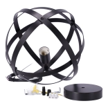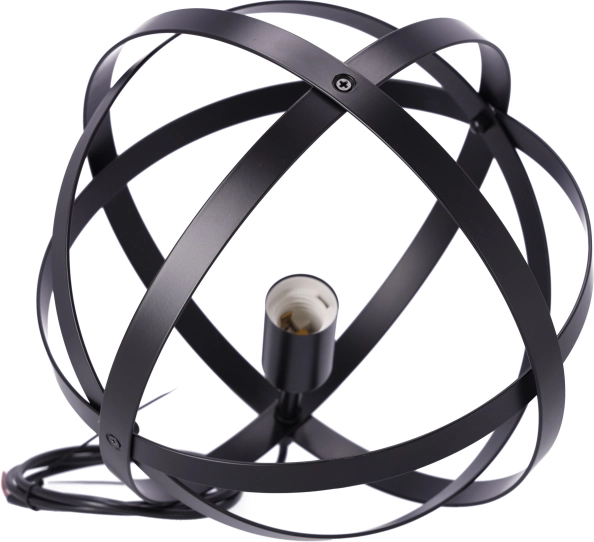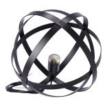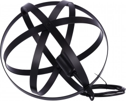 Sferična konstrukcija s prepletenimi kovinskimi trakovi daje svetilki geometrični in originalni videz.