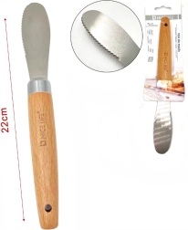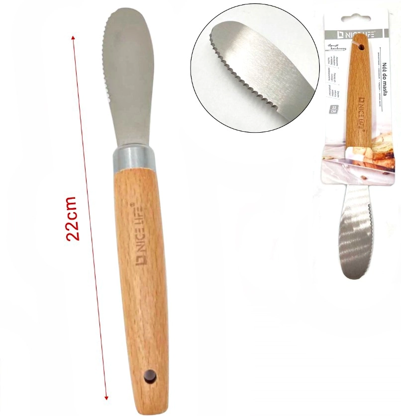 Nož za maslo je nepogrešljiv del opreme vsake kuhinje. Vsak ve, kako pomemben obrok dneva je zajtrk, zato poskrbite, da bodo sendviči, ki jih pripravljate, hranljivi. Idealen je za mazanje masla ali mehkega sira na kruh, priporočamo ga za vsakodnevno uporabo. Nož je izdelan iz kakovostnega nerjavečega jekla z lesenim ročajem.