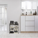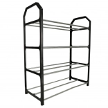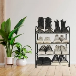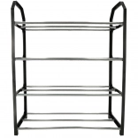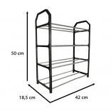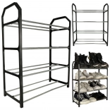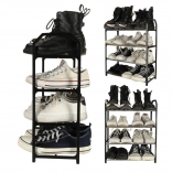 To črno kovinsko stojalo za čevlje je idealna rešitev za organizacijo obutve v predsobi, garderobi ali na hodniku. Zahvaljujoč 4 nivojem lahko udobno shranite več parov čevljev in izkoristite vertikalni prostor brez nepotrebnega zavzemanja površine. Minimalističen dizajn se odlično poda tako modernim kot klasičnim interierjem.