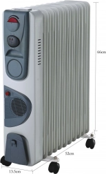 Oljni električni grelec NIKURA 11 reber je odlična rešitev za ogrevanje prostorov v gospodinjstvih in podjetjih. Ogreva do 25 m² in je popolna rešitev v primeru izpada centralnega ogrevanja. S pomočjo oljne polnitve in moči do 2900 W zagotavlja dosledno toploto.