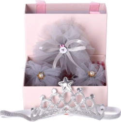 Iščete prikupno in praktično darilo za dojenčka? Ta svetlo sivi darilni komplet 3 v 1 združuje nežen dizajn in največje udobje. Naglavni trakovi iz ekstra raztegljive gume lepo držijo, ne drsijo in ne tiščijo, medtem ko okrasni elementi, kot so čipka, til ali perlice, poskrbijo za nežen videz na fotografijah in ob slovesnih trenutkih.