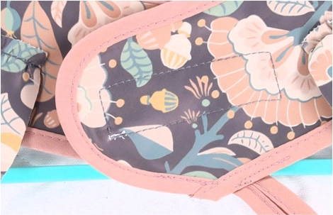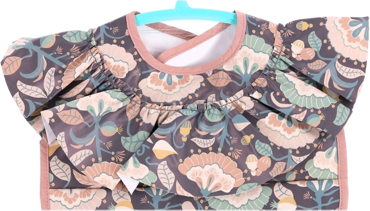 Slinček ima ljubek cvetlični vzorec, ki otroku dodaja stil med jedjo.