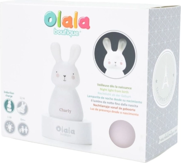 Ta svetilka je varna osvetlitev, primerna za otroke. Brezžična nočna svetilka je bila zasnovana s strani staršev z mislijo na varnost najmlajših. Od prvih dni lahko malčki zaspijo ob nočni svetilki v posteljici in si tako zagotovijo mir in udobje pred spanjem. Svetilko lahko postavite kjerkoli v sobi malčka ali jo namestite doma, da prijetneje osvetlite pot do kopalnice ali do sobe staršev. Če je bilo do zdaj za vašega otroka težko iti spat in ostati v postelji v temni sobi, je ta lučka idealna spremljevalka za sladke sanje. Zajček je majhen, lahek in prilagojen otroškim ročicam. Oddaja nežno svetlobo, primerno za oči. Nevtralnost svetlobe je velika prednost lučke, saj preprečuje prebujanje otroka in utrujenost oči. Lučka se polni z indukcijo.