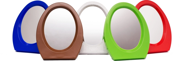 Visokokakovostno kozmetično ogledalce s plastičnim ohišjem. Prikaže tudi najmanjše podrobnosti, olajša nanašanje make-upa, urejanje pričeske in domače kozmetične postopke. Ogledalo ima stabilno podlago, ki zagotavlja stabilnost.