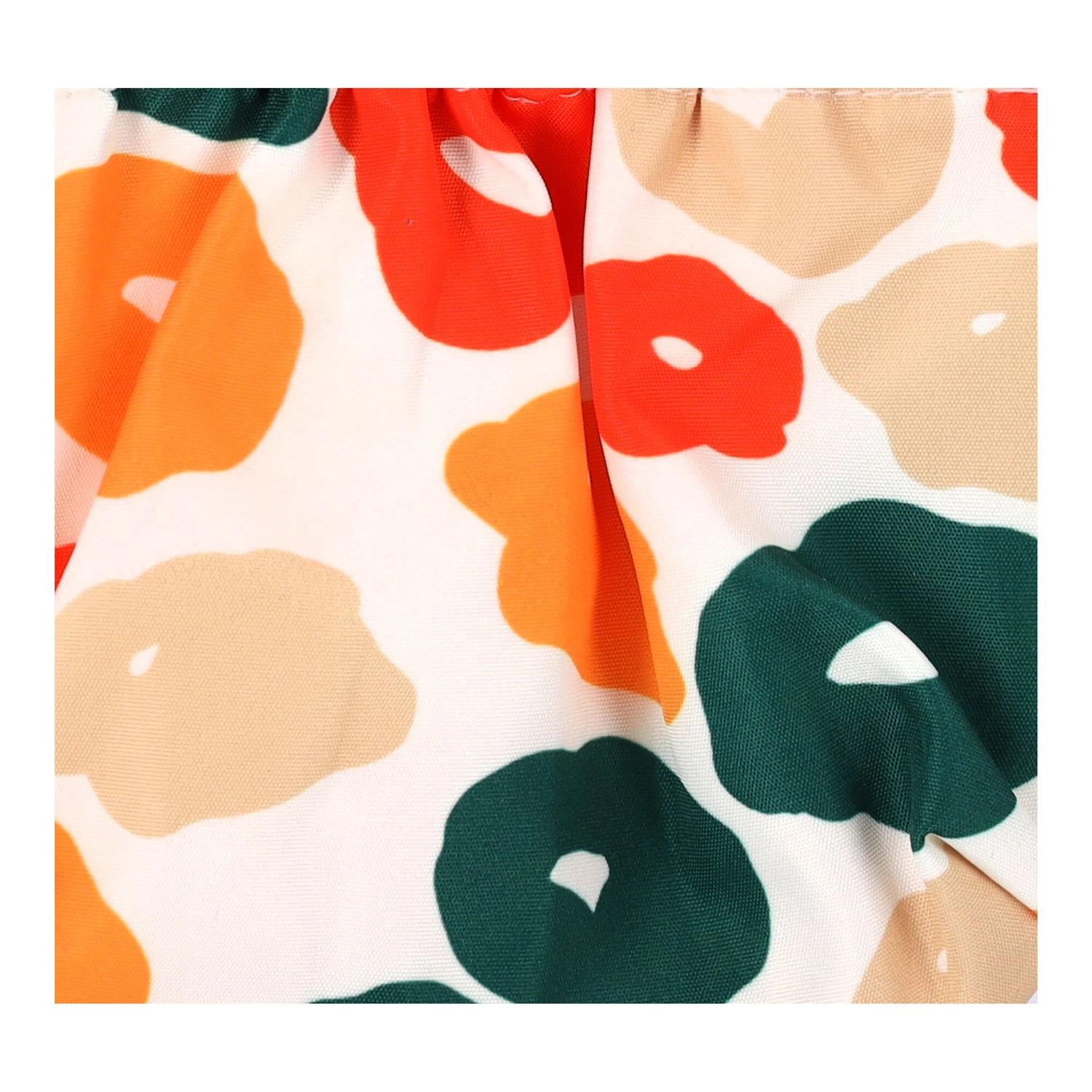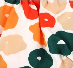 Vpadljiv potisk v zelenih, oranžnih in rdečih tonih doda vaši opremi svež videz in se zlahka kombinira.