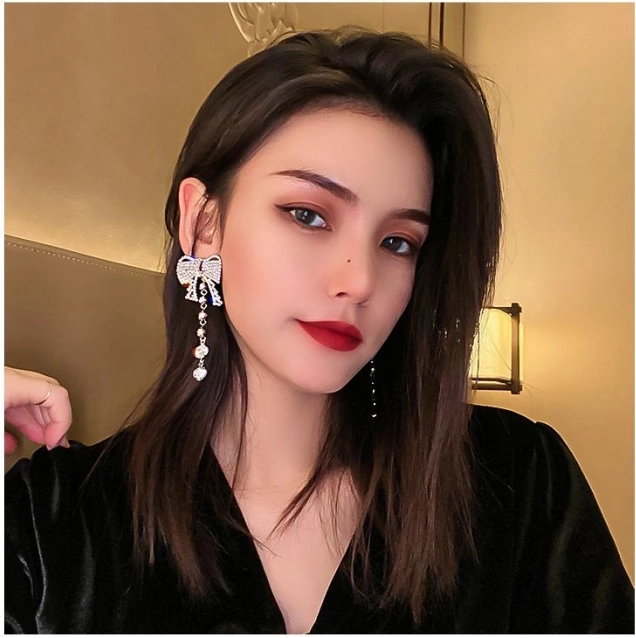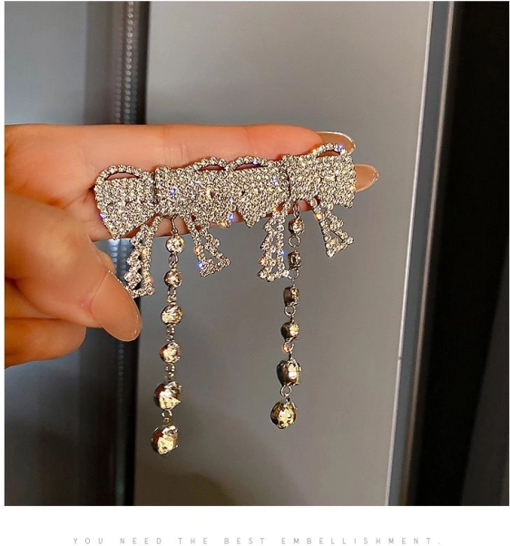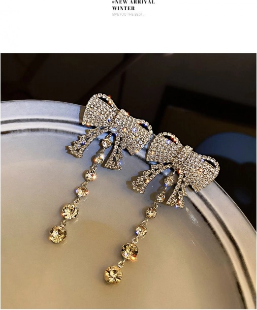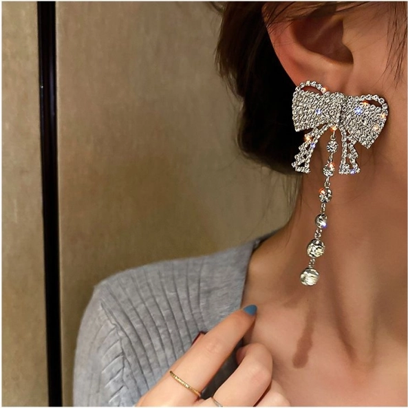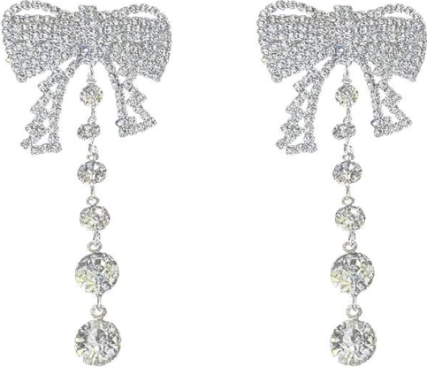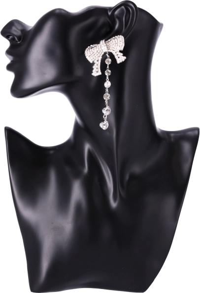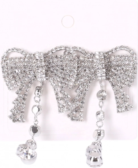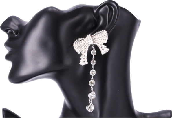 Uhani v obliki pentlje z visečimi kristalki dodajo vsakemu outfitu eleganten in sofisticiran videz.
