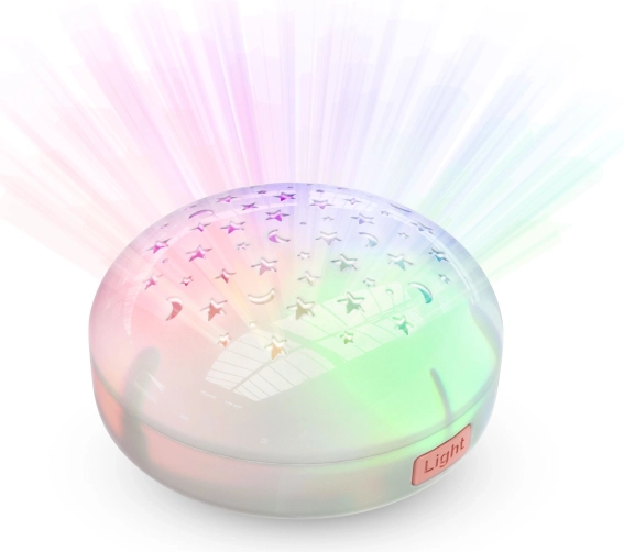 Odstranljiv modul projicira zvezde in lunice na strop – ustvari pomirjujoče svetlobno vzdušje v otroški sobi.