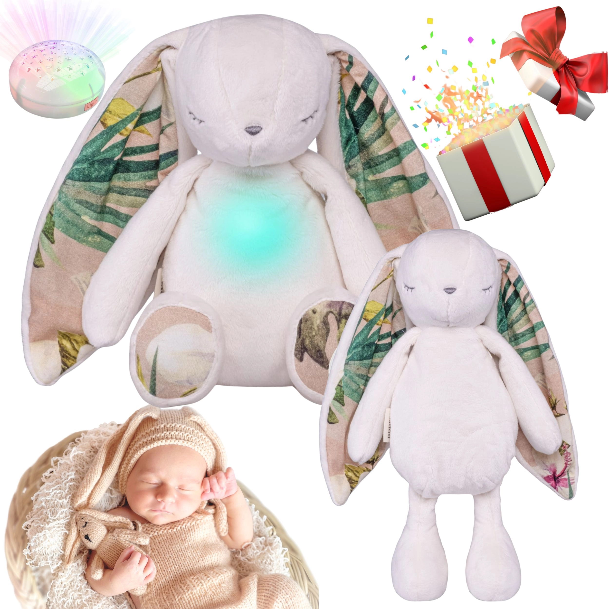 Medvedek Diddou je mehak objemalček in pametna nočna pomoč – iz trebuščka oddaja nežno svetlobo in predvaja šum, ki posnema pogoje v maminem trebuhu. Svetlobni modul lahko odstranite in uporabite kot samostojen projektor na nočni omarici, ki pričara pisane zvezde in lunice na strop in stene.
