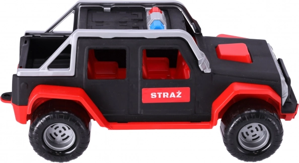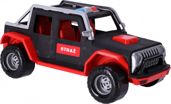 Vozilo dopolni zbirko interventnih vozil in bo všeč malim gasilcem. Igrača je primerna za otroke starejše od 3 let. Avto je opremljen s pogonom na vsa štiri kolesa, dovolj je, da otrok povleče in spusti, in avto bo peljal naprej.
