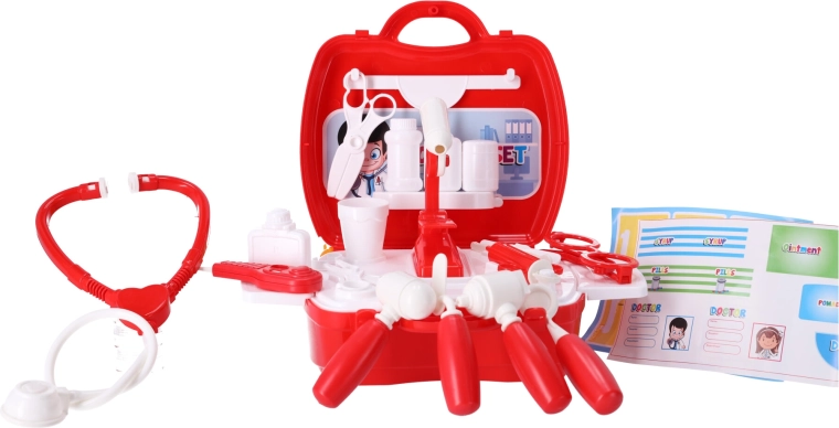 Otroci bodo želeli zdraviti vse člane gospodinjstva, plišaste igrače in punčke ter se hkrati spoznali z delom zdravnika. Pomaga preprečevati strahove pred pregledom, ki jih otroci pogosto doživljajo.
