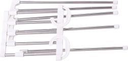 Pospravite omaro s pametnim organizatorjem, ki sprejme do 5 kosov oblačil. Zahvaljujoč izvlečnim palicam in vrtljivim kavljem zagotavlja prihranek prostora, pregledno shranjevanje in zaščito pred zmečkanjem hlač, šalov, kravat in rut.