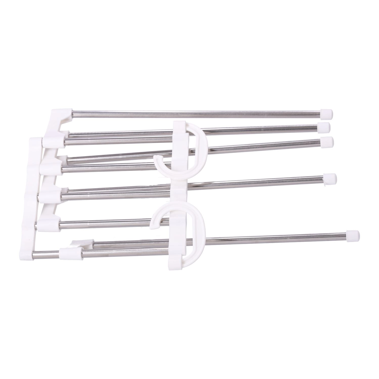 Večnamenski viseči obešalnik je praktičen organizator za vsakodnevni red v omari. Pet kovinskih palic z gladko površino preprečuje mečkanje in prihrani prostor, medtem ko trdna plastična konstrukcija ter dvojni ali enojni kavelj omogočata obešanje horizontalno in vertikalno.