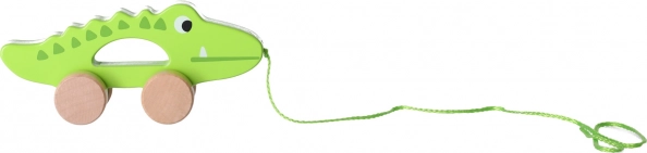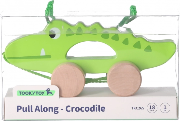 Vlečni krokodil Pusher znamke Tooky Toy je izdelan iz lesa. Prikazan je prikupen krokodil, ki se ob vlečenju z vrvico premika za otrokom. Vrvica je posebej zasnovana za otroke, prijetna in udobna na dotik. Ima stabilna in tiha 4 kolesca ter odprtino, ki otroku omogoča, da krokodila zlahka zgrabi in potiska. Krokodil je idealna igrača za učenje hoje, saj spodbuja gibanje.