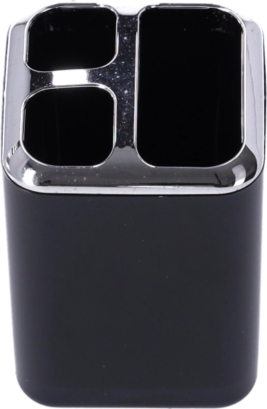 Praktičen lonček z več predelki poskrbi, da so ščetke, pasta in drobnarije pregledno na enem mestu. Kovinski poudarek in sijajna površina dopolnita sodobne kopalnice in olajšata vzdrževanje.