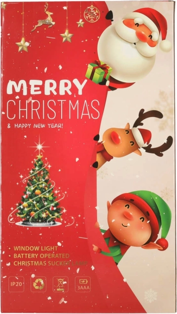 Dekoracija je napajana s tremi AAA baterijami (niso priložene) in varno pritrjena s pomočjo priseska.