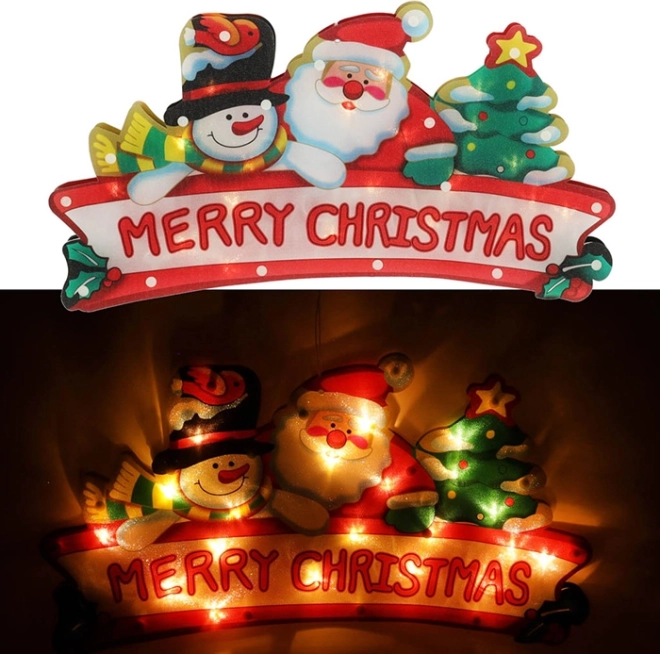 Ta očarljiva božična LED dekoracija z motivom Božička, snežaka in božičnega drevesca prinaša praznično vzdušje v vsak prostor. Preprosto se pritrdi s pomočjo priseska in je napajana z baterijami za udobno postavitev brez nepotrebnih kablov.