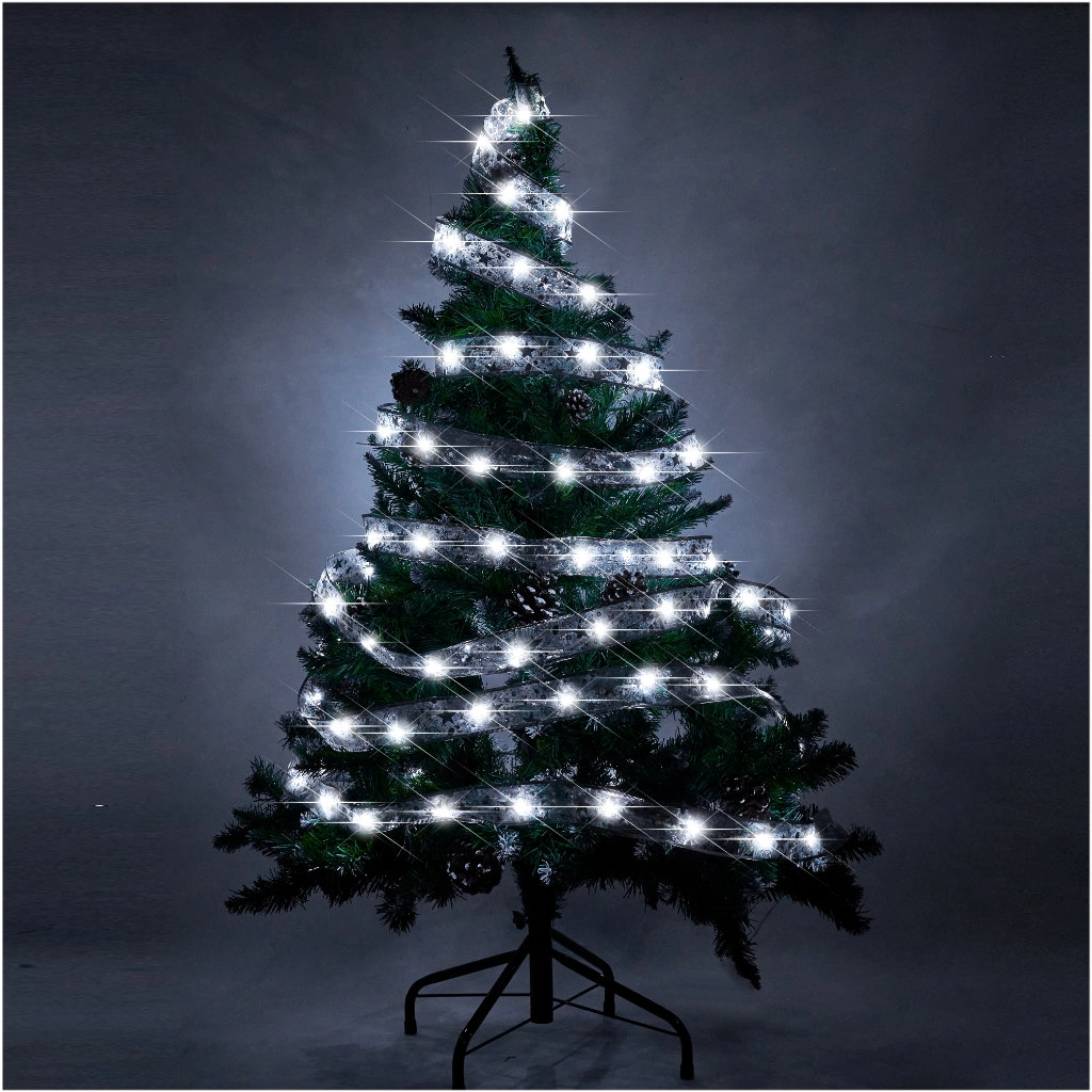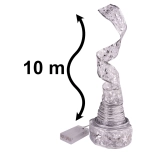 Ustvarite čarobno vzdušje z okrasnim LED trakom dolžine 10 m s 100 LED v hladno beli barvi. Zahvaljujoč napajanju na baterije ga lahko namestite kjerkoli brez vtičnice, 8 svetlobnih načinov pričara praznično razpoloženje, fleksibilna izvedba pa omogoča enostavno oblikovanje okoli drevesca, vencev ali dekoracij.