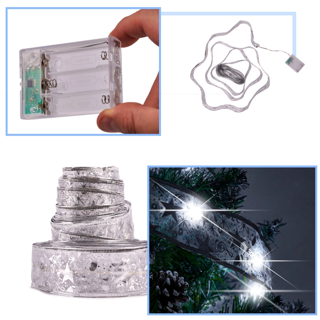 Ta eleganten srebrn LED trak je idealen za božično okrasitev notranjih prostorov in zaščitenih zunanjih površin. Dolžina 10 m z enakomerno razporejenimi diodami zagotavlja nežno in učinkovito osvetlitev. Z napajanjem s 3× AA baterijami ne potrebujete dostopa do elektrike, zato ga zlahka namestite na stopnišče, okna ali mizo.