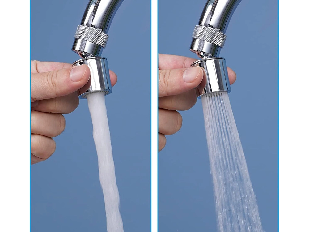 Praktičen nastavek za pipo spremeni vaše pomivanje v udoben in varčen ritual. Z vrtljivo glavo 360° zlahka usmerite curek tja, kjer ga potrebujete, s preklopnikom pa izberete med neprekinjenim in razpršenim curkom. Perlator pomaga zmanjšati porabo vode brez izgube udobja.