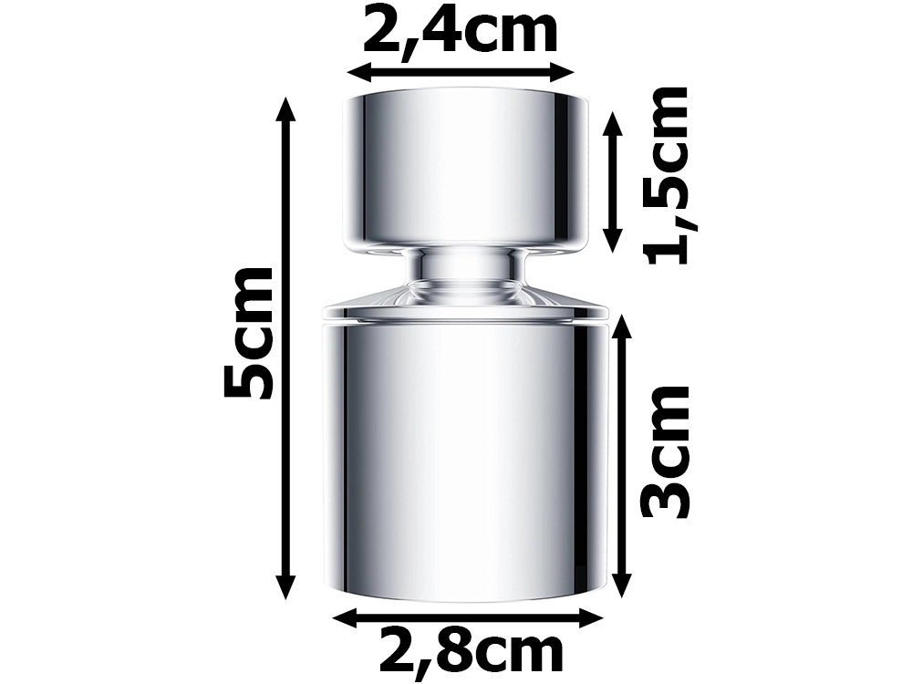 Namestitev traja le trenutek – perlator preprosto privijete na iztok pipe. Univerzalni navoj približno 22 mm zagotavlja združljivost z večino kuhinjskih in kopalniških pip. Kompaktne dimenzije omogočajo udobno uporabo tudi v manjših pomivalnih koritih.