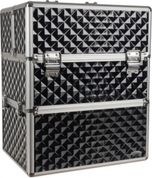 Kozmetični kovček XL Soulima je zasnovan tako, da ustreza potrebam sodobne ženske, ki išče udoben in stilni način organizacije svojih kozmetičnih in osebnih potrebščin. Narejen je iz kakovostne plastike in kovine, barvna kombinacija črna in srebrna daje elegantni videz.