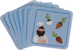 - 80 lesenih kroglic, 24 filc pridelkov, 16 kart memory, 8 košaric, 2 leseni palčki, lesena žlička, leseni kmet